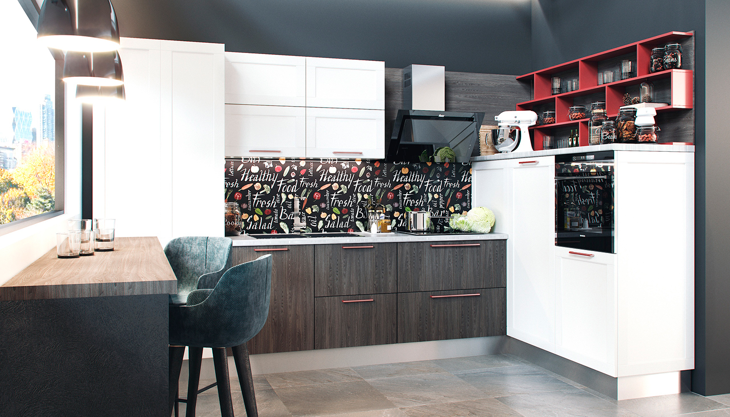 Кухня в стиле модерн имеет богатый выбор цветов, качественные фасады МДФ в ПВХ пленке гарантируют высокий срок службы и защиту. Особенностью данной модели являются фасады «волной», сочетание которых с полочками позволяет создать индивидуальный дизайн.